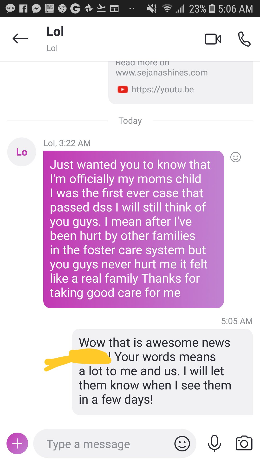 This morning I woke up to a message from our former foster child.