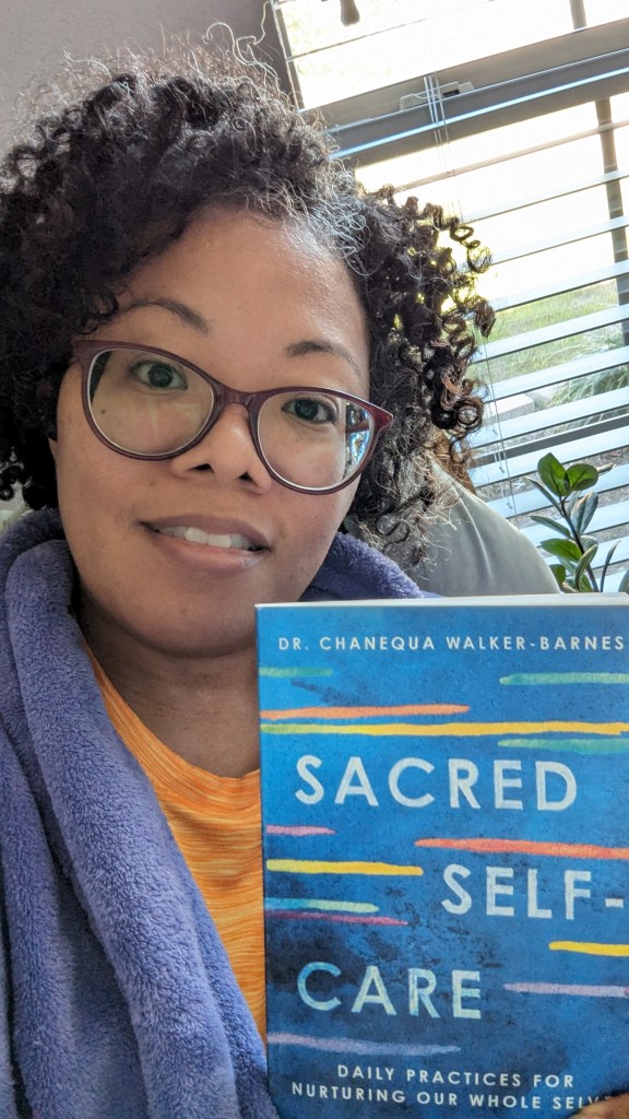 I’m just going to embrace it. I love doing things like this in community. So here goes: Anybody interested in going through this book, “Sacred Self-Care: Daily practices for nurturing our whole selves” by Dr. Chanequa Walker-Barnes with me (and possibly a very small group of others – no more than 6)?