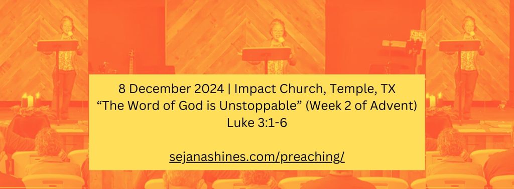 “The Word of the Lord is unstoppable, changes people, leads to peace.” (summary by Roy) Listen in (or read below) my latest sermon from the Lectionary C text for Advent Luke 3:1-6, preached on 8 December 2024 at Impact Temple Church, in Temple, Texas. I hope it blesses you in some way, today.