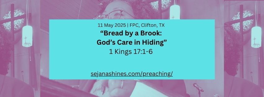 The prophet Elijah was doing the work of the Lord. His work caused him to go into a season of hiding- a season of being cared for very directly by the Lord. I preach about God’s ways of caring for Elijah by the brook and the ways in which God cares for me (and for you) in my sermon prepared for the congregation of First Presbyterian Church Clifton on 11 May 2025, Mother’s Day. May we recognize the ‘bread’ provided to us, even when it comes to us in different ways. May we accept it and be nourished by it in this season. And may we be strengthened through this experience to share with others for the next.